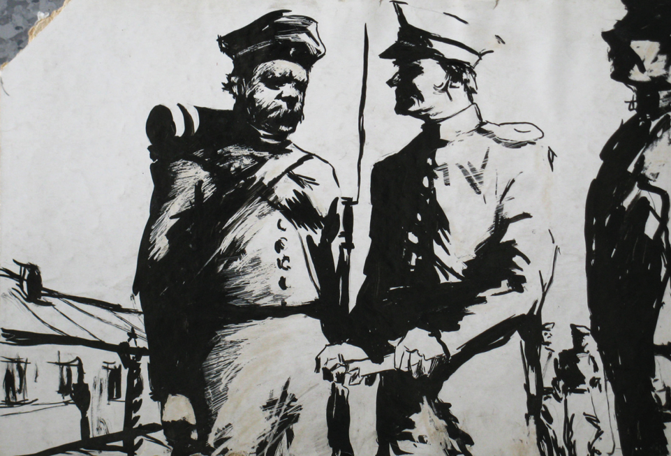 Музей кино для выставки предоставил эскизы Левана Шенгелия к фильму Игоря Савченко 1951 года "Тарас Шевченко", в котором роль украинского поэта исполнил Сергей Бондарчук.
