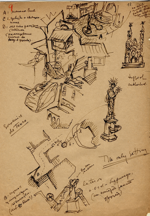 Особое место на выставке занимают рисунки Сергея Эйзенштейна (их оригиналы хранятся в Российском государственном архиве литературы и искусства).