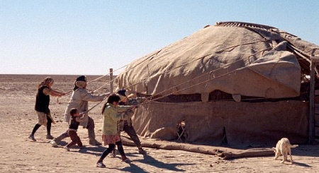 Поиск внутри себя способности к любви и милосердию, реанимация чувств лежит в основе, на мой взгляд, лучшей картины года – экзистенциальной драмы Кирилла Серебренникова Юрьев день - о матери, после потери единственного ребенка, утратившей оплот прежней идентичности и ввергнутой в пучину распада. Жизнь оперной примадонны дает трещину: героиня, испытав перелом жизненного каркаса, отвергает свой мировой статус и навеки остается в провинциальном русском городе, сожравшем ее сына. Для концентрации морока Серебренников берет на вооружение любимые игрушки архаически ориентированного сознания – фантазии о звериной природной силе России, которая представляет собой не то непролазную топь, не то святую землю, не то Зону, которой предписано вершить чудеса. Режиссер, дежурным образом задействовав специфические приметы быдловатого ужаса окраины, одновременно навлек на себя гнев с обеих сторон: поборники духовности обвиняли автора в мракобесии, потребительски ориентированные интеллектуалы - в расчетливом приращении "духовности" (что в среде прогрессивной критики уже не первый год ходит как главное оскорбление художественного произведения). Поскольку Кирилл Серебренников, видный режиссер и яркая культурная фигура, давно находится на свету, можно с некоторой уверенностью предположить, что почвеннические и православные закидоны интересуют его в наименьшей степени. Серебренников моделирует ситуацию выживания (а не подавления) личности, что радикально отличает его от коллег, которые, на первый взгляд, также выводят на экране чернуху, грязь и низость. Главным толчком к пониманию этой трактовки является не только признание самого режиссера, во многих интервью формулирующим тему фильма с позиций вполне объяснимого стремления современного человека, затравленного страхами и измученного стрессами, защититься от насильственного изменения привычных состояний, научиться воспринимать перемену участи с гордо поднятой головой. Принятие вывода о возрождении личности определяется не столько словами автора, сколько атмосферой самого фильма. Вначале ленты за героиню неистово боишься - за ее психику, риск нравственного падения и перспективу неотвратимого забвения, но к финалу женщина овладевает пространством, в котором, казалось, ей было суждено сгинуть. Тяжелый фильм завершается нотой надежды: женщина победительницей входит и в лазарет к смердящим зекам, и в полуразрушенный продуваемый ледяными ветрами храм. От осознания добровольно избранной, а не навязанной извне участи, становится спокойно на душе – ничего страшного на этой земле с героиней уже не случится.Таким же жизнеутверждающим, но совершенно противоположным по стилистике фильмом является милая восточная трагикомедия Сергея Дворцевого Тюльпан, за триумфальным шествием которого "Синематека" следит с момента каннского награждения ленты в программе "Особый взгляд". Остается лишь развести руками и констатировать возмутительную халатность отечественных кинопрокатчиков, не проявивших интереса к ленте, которая покорила уже полмира - Канн, Токио, Лондон, Монреаль, Карловы Вары, Цюрих, Гоа, Коттбус, Сан Пауло. Кроме того, Тюльпан - единственная картина от России, номинированная в прошлом году Европейской киноакадемией. К сожалению, отечественный зритель, по-прежнему, ведать не в