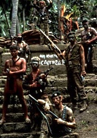 Сцены в логове Курца прочитываются не только как обличение военной диктатуры, но и как злой выпад в адрес коммун и контркультуры 60-х. Многие её теоретики мечтали удалиться куда-то в неизведанные земли и предаться там спокойной жизни среди не обременённых цивилизацией местных жителей. Герой Брандо эту утопию воплотил в жизнь – пожалуйста, идеалисты-интеллектуалы, наслаждайтесь идиллией в крови, среди отрубленных голов, слепого подчинения и даже при интеллигентном журналисте-биографе рядом.