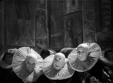Иван Грозный представляет собой конечный пункт эволюции Эйзенштейна на пути к формализму и максимальному отходу от народных масс как идеальной темы для художественного произведения. В то же время было бы совершенно ошибочно считать эту картину торжеством индивидуализма в творчестве Эйзенштейна. Это значило бы забыть об абсолютной неспособности режиссера отображать внутренний мир человека и его конкретную сущность. Действующие лица обоих фильмов - не столько живые люди из плоти и крови, сколько одержимые марионетки или маски, черпающие бо́льшую часть своей силы (которую можно счесть чрезвычайно искусственной) из расположения в пластической геометрии планов и мизансцен. В визуальном отношении на ум сразу же приходит сравнение с шахматами: действующие лица фильма и, в особенности, актеры - всего лишь фигурки, которыми управляет сверху режиссер-демиург. Именно на этом уровне происходит извечное и непримиримое столкновение между почитателями режиссера и его критиками; последние, по правде говоря, находятся в меньшинстве, однако в кинематографе истина часто оказывается на стороне меньшинства. Один - Мишель Мурле - писал в "NRF" сразу после выхода фильма в двух сериях: "Иван Грозный находится в точке пересечения по-детски наивного кинематографа, еще стесненного древней немотой, и вымученного декаданса эстета, сочетающего наивность метафор с витиеватой пустотой форм. Величественные и аффектированные движения актеров словно оплетают пространство согласными звуками, однако остатки слов нам расслышать не дано. Ничто не кроется за этим сотрясением воздуха, за этой отчаянной медлительностью, безуспешно стремящейся к величию, - на ум приходит образ лягушки, которая все надувается, но не может даже лопнуть".