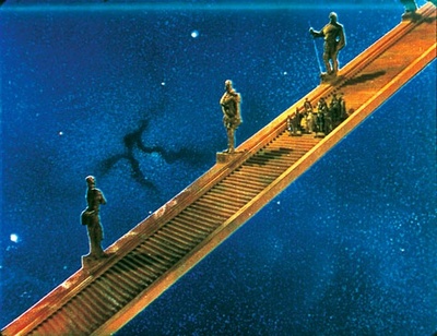 Только любовь способна объединить два мира и породить в персонажах лирический порыв, который изгонит (по крайней мере, из их сердец) болезненную мрачность мира, опустошенного войной. Смелость и дерзость связана, в частности, с персонажем Реймонда Мэсси, который убежденно декламирует антианглийские лозунги. В эпизоде суда, когда произносится эта обличительная речь, виден один недостаток "Арчеров": тяготение к пафосу, безразличие к лаконичности драматургии; оно становится еще заметнее в более длинных картинах, делая их легкой добычей для цензоров и прочих любителей покромсать пленку. Но фильмы Пауэлла и Прессбургера надо любить в подлинном виде - такими, какие они есть, с их щедрым и причудливым размахом, избыточностью, игрой на контрастах (лиризм и насмешка, рассудительность и бред), с декорациями больше натуральной величины, с бесконечно хитроумными техническими эффектами, с визуальными находками и нескончаемыми тирадами, с их эзотеричностью и мальчишескими проказами. Эти фильмы сняты, в первую очередь, изобретателями, каждый раз заново открывающими кинематограф; они почти безгранично полагаются на зрителя и верят в их тоговность к новым впечатлениям.