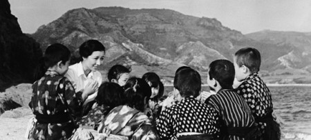Начнём с японского кино, тем более что японской культуре отношение к учителям особое. Самой показательной работой на интересующую нас тему остаётся снятый ещё в 1954 фильм 24 глаза Кейсуке Киноситы. 50-е и начало 60-х в японском кино - это период, нежно любимый академической критикой. Для меня же это достаточно бледный этап великой кинематографии, избегающий конфликтности и предвосхищающий удушающую эпоху политкорректности. Киносита вроде как показательный для той эпохи режиссёр: автор "амбициозных, но плохо сделанных и лишённых подлинного интереса фильмов" (если кто заподозрил меня в очередном цитировании кинобунтарей вообще и Фукасаку в частности, то спешу разочаровать – это определение дал Киносите безусловный классик Ясудзиро Одзу; в своих дневниках Одзу-сан находил больше тёплых слов для американцев Хауарда Хокса или Фрэнка Капры, чем для некоторых соотечественников). И вот вам 24 глаза , два с половиной часа внешне сентиментальной истории об отношениях учительницы со своими подопечными на протяжении многих лет, её житейские беды, да ещё на фоне предвоенной милитаристской истерии, тягот 40-х и попыток приспособиться к новому порядку после поражения Японии. На экране проливается море слёз – да и в зрительном зале, думаю, не меньше (процитирую критика Тадао Сато: "Ни один послевоенный японский фильм не имел такого слезоточивого эффекта").