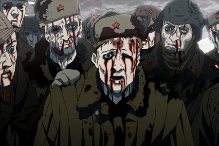 Что до последнего, анимешников можно понять: с точки зрения анимации, Первый отряд - фильм довольно простенький и к тому же несколько вестернизированный. Здесь нет ни сумасшедших компьютерных эффектов, ни сногсшибательных красот, коими славится продвинутая японская анимация. Да и сама анимешная специфика несколько нивелирована. Так, например, Шприц в интервью рассказывает, как они ввели запрет на "манпу". Этот прием, заставляющий лица рисованных героев в ответственные моменты искажаться до нечеловеческих выражений и пропорций, действительно часто коробит европейский взгляд, но в то же время является важной характеристикой аниме (исследователи творчества Миядзаки целые страницы посвящают тому, как именно "живой бог" японского мультфильма посредством растягиваний, сжатий и искривлений лиц героев достигает драматического эффекта).