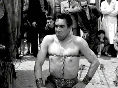 Феллини и Пазолини познакомились во второй половине пятидесятых, задолго до своей встречи в кинокомпании "Федериц". В то время, когда Феллини готовился к съемкам Ночей Кабирии, писатель сопровождал его в поездках в автомобиле по Риму в поисках Бомбы, типичной шлюхи с римской окраины, и впоследствии принимал участие в со здании сценария самого фильма. Между делом он описал и эту поездку за Бомбой, набросав тогда же подробный портрет самого Феллини. Этот рассказ был сначала опубликован в его книге о фильме Ночи Кабирии, упомянул его Пазолини в одном из стихотворений цикла "Религия моего времени" (1959), затем в стихотворении "Правила иллюзии" (1992) и, как совершенно новое произведение, в еженедельнике "Эспрессо".