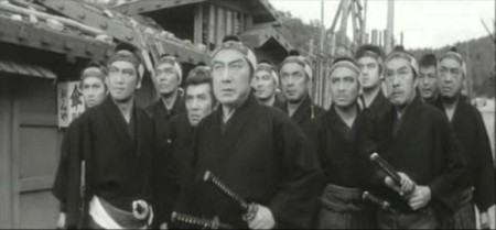 После Большой бойни третья часть вольной трилогии, 11 самураев (1967), кажется едва ли не развлекательной. Динамичное действие, быстрый монтаж, множество схваток. Это парафраз знаменитой истории о 47 ронинах рассказывает о самураях-мстителях, которые должны расправиться с уверенным в своей безнаказанности придворным. Негодяй с лёгкостью готов уничтожить бедного фермера, помешавшего его охоте, и незначительного феодала, осмелившегося выступить против такого произвола. Серия неудачных нападений приводит к очередной умопомрачительной битве. Кудо снова демонстрирует свой выдающийся талант в постановке боёв, так как схватка двадцатиминутной продолжительности ни в чём не повторяет находки 13 убийц и Большой бойни, но содержит все отличительные черты почерка режиссёра в соединении реализма и зрелищности. Свои любимые темы Кудо вплёл в повествование и здесь - 11 самураев является не только эффектным самурайским боевиком, но ещё и рассуждением об ответственности власти за свои действия и гимном в честь циничных одиночек. Отличный актёр Ко Нишимура блистателен в роли ронина, который примыкает к отряду мстителей не из-за высоких абстракций, а из-за желания быть в вечной оппозиции к властям (в этом снова можно увидеть любопытную отсылку к американскому и европейскому кино – вестернам о разочарованных циниках, примкнувших к мексиканским революционерам именно из-за желания постоянно быть против существующих порядков). И именно он остаётся в живых после кульминационной бойни, чтобы уйти в туманный рассвет и обозначить переход к циничным и прекрасным 70-м.
