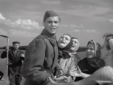 Ещё более причудливо - а для догматиков и кощунственно, - выглядело, когда интонации, словно созданные для изображения томлений западной элиты, изнемогающей от избытка свободного времени, накладывались на материал... Великой Отечественной, предполагавший, казалось, исключительно героические краски и воспевание фронтового товарищества, а не унылую констатацию фатальной разобщённости. Так, в сцене Иванова детства, где, кружа меж берёз, прогуливаются "с подтекстом" медсестра Маша и лейтенант Холин, легко можно уловить интонации Антониони.