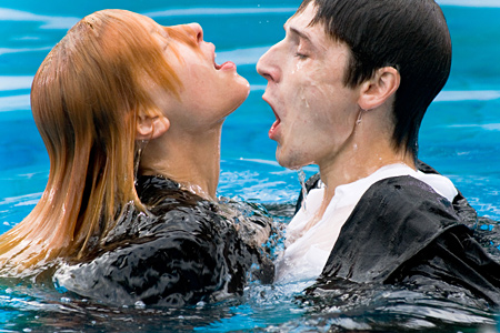 Короткое дыхание на полнометражной дистанции – фильм идет всего 75 минут - приводит к самоповторам, которые хитроумно задекларированы концепцией проекта. Микросюжеты фильма без особой фантазии названы треками виртуального музыкального альбома, что позволяет авторам повторяться дюжину раз подряд (с учетом десяти основных частей и непрошенных бонусов). Выбор концепции задает стилистику, блуждающую между оголенным формализмом клипмейкеров 90-х, на какое-то время подменивших собою кинорежиссеров (ряд от Юрия Грымова до Федора Бондарчука) и анекдотически пафосной позой, какую занимают в ящике недалекие музыкальные коллективы 00-х, выступающие с детским лепетом от имени всего поколения (группы типа "Звери"). Со "зверским" рвением авторы прогоняют через двух героев, уверенных в своей экранной неотразимости, деревянный текст, который начитывается под бесформенную фонограмму кислого лаунжа, до сих пор считающегося продвинутым музыкальным жанром. Не знаю, как в театре, но киноэкран требует лучшей организации игрового пространства и более тонкой обработки месседжа. В кино видно, что авторы стараются изо всех сил быть модными, быть в авангарде и одновременно получить аншлаг-аншлаг. Авторы столь явно целятся в эпатирующие темы, что даже не утруждают себя драматургией, в широком смысле искусством и логикой построения сюжета, выбрасывая речитатив белым стихом в режиме песни (непонятно, что это за молодые люди, откуда взялись, что их удерживает друг с другом, чем живут, как взаимодействуют с миром?). С песни взятки гладки.