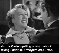 Один из хичкоковских персонажей никогда не воспринимает убийство всерьез, вовсю насмехаясь над ним. Самым запоминающимся в этом плане является, возможно, эпизод из фильма Тень сомнения (1943), в котором Хенри Трэверс и Хьюм Кронин, сидя за обеденным столом, со смехом обсуждают различные способы убийства и сокрытия его следов. Шокирующее чувство юмора зачастую приводит в смятение легковерных соседей, которые не понимают, серьезен их собеседник или нет. В Незнакомцах в поезде (1951) Роберт Уолкер на вечеринке рассказывает девушке о способах удушения, и это вызывает у нее смех. В Веревке (1948) Констанс Кольер истерически смеется, услышав идею Руперта (Джеймс Стюарт) об убийстве ради спортивного интереса. В Окне во двор (1954) у Телмы Риттер сильное волнение вызывают слова о возможном убийстве во дворе дома.