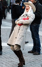 Да, никогда не знаешь, откуда это приходит. Вначале, помимо двух провожающих в аэропорту, появляется Луис Тосар. Затем – Тильда. Должен признать, что ее реплики я написал в ночь перед съемками. Она приехала только на пару дней, и наша первая проба получилась неудачной. Во время работы я думал: "У нас не получается, и виновата здесь не Тильда, она великолепна. Но то, что я пропускаю сквозь нее, не срабатывает. Черт, придется отправиться домой, переписать эту сцену и завтра попробовать начать сначала". Помимо этого, я совершил ошибку, позволив ей использовать красную помаду. За тем, как она выглядела, я следил очень внимательно. Утром в первый день Тильда и ее гример посоветовали не применять красный цвет, но мне самому очень этого хотелось. У меня были ее вчерашние снимки у костюмера. В процессе работы я понял, что нам не подойдут не только мои диалоги, но и ее губы. Я так и подумал: "Это не правильно, мне это не нравится!" Момент был неудачным. Тогда я просто сказал: "Вернемся к этому завтра, я перепишу сцену, мне она не нравится, и я хотел бы вернуться к красному цвету. Даже фрагменты, снятые без нанесения губной помады, придется заново переделывать". И я отправился домой, не спал всю ночь и вернулся на площадку с уже переписанной сценой. Тогда я вдруг подумал: "Неужели все так и будет? Может, я просто теряю фильм?" К счастью, в итоге подобное произошло лишь однажды, и я смог переписать диалог, поняв, что изначальный вариант не подходит для фильма. "У меня есть Тильда, и я не смогу подвести ее плохими диалогами." Первоначальный вариант, хотя и относился к той же теме, звучал слишком неестественно.
