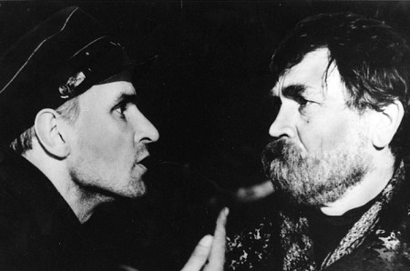 Майор Петушков – личность неприятная и в этом качестве весьма типичная. Людей для него не существует, война – это эффективные результаты в борьбе с противником. В речи его преобладают казенные лозунги, неловко маскирующие взвинченную беспомощность. Широко известен эпизод фильма, когда командир Локотков отказывается взрывать мост, под которым предусмотрительные немцы пускают баржу с советскими военнопленными – они служат живым прикрытием, пока по мосту идет военный эшелон. Петушков впадает в настоящее бешенство и грозит застрелить саботажника. У Солоницына эта истерика срабатывает как бомба, сопоставимая с той, что тихо, но ощутимо взорвалась в монологе Алексея Петренко из следующей картины Германа 20 дней без войны. Похоже, это единственный эпизод в советском военном кино, где офицер, коммунист и, кажется, профессиональный партработник, выведен родней какого-нибудь гестаповского параноика в перчатках и с моноклем в глазу…