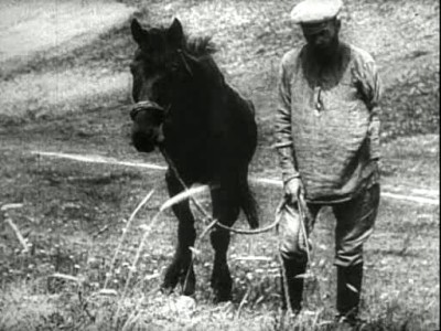 Поэтому "разоблачительная" ирония автора по отношению к древней Легенде, рассказанной в Звенигоре, совершенно не ощущается - она представлена на экране так, как если бы её рассказал не "отсталый" дед, а вдохновенно изобразил сам Довженко. Тем более, что, судя по этим кадрам с их статуарными, "картинными" композициями - сильное впечатление на него оказал фильм Фрица Ланга Нибелунги (Германия, 1924) - тоже, как-никак народный эпос, так и что пародийность здесь не слишком просматривается. Действительно, как можно снимать картину, направленную против мифа - говоря на языке этого же самого мифа, к тому же столь любовно воссозданого?