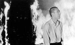 Кон Итикава поставил фильм по произведению Юкио Мисимы "Золотой храм" через два года после публикации романа в журнале "Синтё". Тогда Мисима не был тем бесцеремонным героем буржуазной богемы, которая превыше всего почитала бунт, революции и полярные идеологические установки. Мисима был молодым амбициозным прозаиком, интеллектуалом и эстетом, чьи произведения хвалили за острое как меч слово, авторскую смелость и изощренный подход к психологии и гуманизму. Режиссер фильма в экранизации романа взял такую ноту, на которую никто не решился бы после скандального самоубийства Мисимы. Посмертная слава самурая и реваншиста, проводника культа силы и певца смерти сделала невозможным экранизацию его творчества без отсылок к фигуре самого Мисимы (и личной позиции по отношению к его философии). Вероятно, поэтому Итикава не любил обсуждать Пламя, но весьма ценил этот фильм.