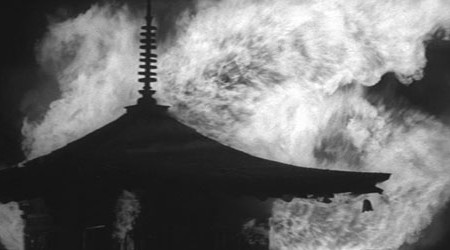 Что касается режиссера, он не оставляет иллюзий в наличии добродетелей у главного героя. Тем не менее, Итикава не позволяет себе издеваться над несчастным юношей, сохраняя по отношению к нему буддистскую дистанцию. Автор чрезвычайно внимателен к психологии персонажа, тем разрушительным процессам, которые развиваются внутри героя: от робости перед храмом, как объектом поклонения, до капризной требовательности и варварского стремления подчинить себе красоту. Итикава критикует не героя, а гражданское общество, которое тычет пальцем в этапируемого преступника и ратует за более строгий приговор. Автор неоднократно проговаривает главную тему и фильма (и романа) – о сохранении себя при изменении окружающего мира. В романе Мисима вкладывал в уста монаха важные для понимания трагедии слова: "Наше недовольство миром, сколь бы яростным оно ни было, в принципе излечимо: достаточно, чтобы изменился либо ты сам, либо окружающий тебя мир. <…>Путем долгих рассуждений я пришел к такому логическому выводу: если мир изменится, я существовать не смогу; а если изменюсь я, то не сможет существовать мир". Большому мастеру японского кино Кону Итикаве удалось передать посредством экрана предельную ясность, изысканную красоту и одновременно недопустимость этой опасной максимы.