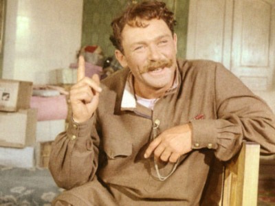 Справную жилетку с косовороткой, в которых он важничал при старом режиме, Фока сменил на демократический тельник и куртку с чужого плеча. Они идут ему, как корове седло, и не слишком маскируют его злодейскую сущность. Да и орудует этот "затаившийся враг" вполне открыто - колхозную конюшню деловито поджигает прямо средь бела дня, а зачем - Бог весть. Можно подумать, что в советском колхозе Фока работает вредителем - ну, если не в жизни, то в фильмах тех лет такая штатная должность точно присутствовала, достаточно взглянуть на их аннотации.