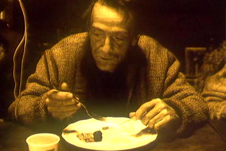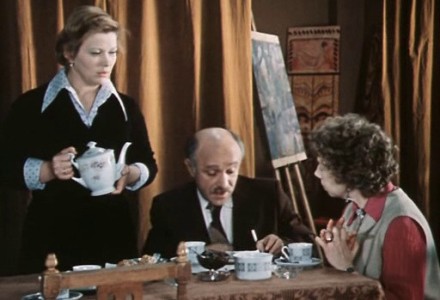 Не то чтобы это была пародия на советскую повседневность с ее дефицитом, бытовыми тяготами и преувеличенной заботой о детях. Это о том, что жизнь разбрасывает людей, куда ни попадя, а изменить ничего нельзя. Только замучено улыбаться, рассказывая, как "фефушка с бабушкой" "суфились дфуг с дфугом", чтобы выяснить, с кем из них останется ребенок-сирота. А рядом будет корчиться от смеха случайный свидетель этой речи, обращенной в пустоту. В этой клоунаде снова спрятан трагизм, который даже не заставляет себя долго ждать. Роль ведь совсем небольшая.