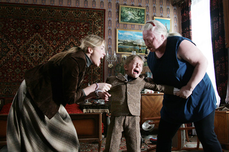 Уже неоднократно отмечено, что российские киноэкраны в последнее время заполонила милиция – как иррациональная сила, призванная охранять и защищать, но действующая агрессивно – в соответствии с одной ей ведомыми потребностями. Так вот, бабушка из Похороните меня за плинтусом, как ни странно это звучит, страшнее любого "мента", потому что это сила столь же иррациональная, но при этом не внешняя, а внутренняя, отравляющая своими действиями всю семью, весь ближний круг. Ее "воспитание" – смесь тирании и сверхзаботы, тесной, как ненавидимые советскими детьми рейтузы, и никто не может предсказать, какую составляющую этой смеси бабушка пустит в ход в следующую секунду.