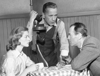 Такого Богарта больше не будет – взлохмаченного и с трехдневной щетиной - непосредственного, взрывного, лишенного циничной брони. Появление гангстера ждешь как избавления от сентиментальной патоки сюжета, в котором герой Хауарда – залетный соловей, воркующий с мечтающей о Париже деревенской девочкой (Бэтт Дэвис), уже навевала тоску. Богарт избавил недоброжелателей от всех сомнений на свой счет, привнеся в фильм необходимую жесткость и разнообразие, хотя изначально на его роль прочили Эдварда Робинсона. По иронии судьбы Робинсон сыграет гангстера в Ки Ларго /1948/ - вольном римейке Окаменевшего леса, где самому Богарту, перешедшему к тому времени в категорию положительных героев, достанется роль спасителя. История захвата заложников в кафе "Бар-Би-Кью" Дюком Манти, прототипом Джона Дилинджера, была симптоматичной. С этого фильма неотразимый Хамфри начал победоносно "захватывать заложников" среди кинозрителей.