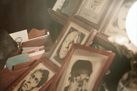 На столе разложены фотографии джентльменов, которых Шерлок предлагает опознать Ватсону и которых он называет своими "хорошими знакомыми". Предлагаю читателям блеснуть эрудицией, опознав этих очаровательных персонажей. В других кадрах можно разглядеть, что на одной из этих фотографий – Лон Чейни в гриме "Призрака оперы", а на портрете Лона Чейни-младшего лежит толстенная лупа. Таким образом, Шерлок Холмс, скорее всего, был еще и историком раннего хоррора.