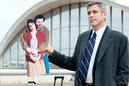 Все это было бы назидательно и скучно, если бы не очарование персонажа. Неслучайно, на главную роль был приглашен Джордж Клуни - носитель природного обаяния и записной красавец, каких Голливуд не выпускал со времен своей "золотой эры". У его персонажа есть все шансы стать "героем поколения". Его герой компетентен, импозантен, собран, подтянут, состоятелен; умеет управлять своими чувствами, держать на расстоянии ближнее окружение и манипулировать начальством; видит насквозь подоплеку человеческих мотивов; обладает отточенной практикой боевой коммуникации, которая позволяет в нужный момент запудрить мозги, затащить в постель, обвести вокруг пальца. К нему не подступиться, у него все схвачено и на земле, и на небе. Сопротивляться такому напору обаяния и в самом деле непросто не только тем, кто предрасположен к гламурным образам и осязаемым знакам комфорта, платиновым картам и vip-обслуживанию, но и тем, кто мечтает бросить все, и красиво, с одним чемоданом, улететь на край света (а кто не мечтает?); кто обожает гигантские залитые солнцем современные аэровокзалы и любит открывать новые места (а кто не любит?) И здесь Райтман подкупает пестрыми картинами провинциальной глубинки. География служебных разъездов героя представлена смиренно и отрадно, даже если она маркируется пребыванием персонажа лишь в офисах, гостиницах и залах ожидания. Титр с названием очередного городка зависает на фоне рекреационной красоты городов и весей, снятых с высоты самолета, что успокаивает иного заядлого путешественника лучше сеанса восточной медитации.