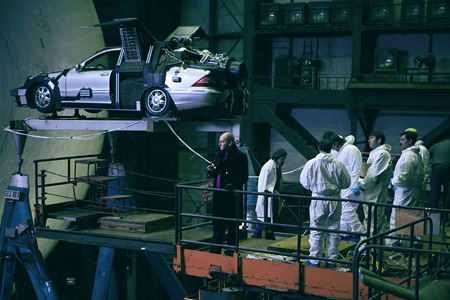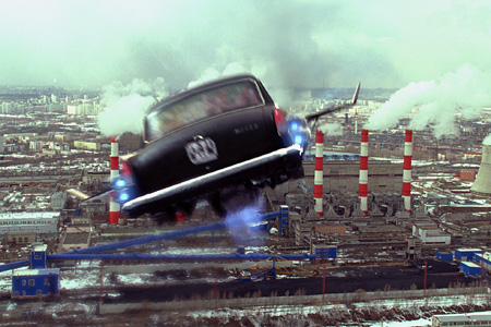 Поначалу Дима ведет себя, как среднестатистический современный юноша. Ему нужны деньги, чтобы ухаживать за девушкой, отец как раз подарил отстойную машину ГАЗ-21, надо вертеться – к примеру, развозить цветы. Кстати, касательно "отстоя". Бекмамбетов тонко подчеркнул, что винтаж всегда будет слегка недопонят – и тем ценен. Толстобокая "Волга", похожая на "Крайслер" времен Джеймса Дина, материализует связь времен, влетает в кадр, как привет космической романтике ранних шестидесятых, откуда случайно выпадает звуковое письмо на гибкой пластинке – прикостровая песенка под гитару, написанная влюбленным физиком. Дима не знает, что отец нашел машину, расчищая стройплощадку под очередной объект "Москва-сити". Что именно эту машину как созданный в 1960-е годы опытный носитель нанокатализатора ищет хищный олигарх Купцов, читающий в МГУ циничные лекции о путях достижения успеха и мечтающий достать из-под Москвы алмазы, не поступившись опасностью отправить в бездну целый город. Не знает Дима и того, что любовный треугольник, который он разыгрывает с Максимом и Настей, нужен для того, чтобы, наконец, реализовать мечту, которой когда-то помешал другой любовный треугольник. Двое физиков не поделили девушку-коллегу, пока втроем разрабатывали пресловутый чудо-прибор в секретной лаборатории. В итоге один из них, менее успешный и менее талантливый, сделал так, что прибор не сработал, рабочую группу распустили, более успешный уехал за Нобелевкой за границу, а девушка осталась. Но катализатор на самом деле получился, советская наука в очередной раз оказалась жертвой человеческого фактора, а счастливый Дима взмыл над Москвой на летающей машине, минуя пробки, чтобы сделать серьезные деньги. Мелко! Смерть отца переворачивает этот убогий постсоветский мир, проникнутый наивным стяжательством.