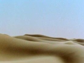 Все подвижные съемки "потерянных ландшафтов" были сделаны с крыши нашего микроавтобуса "фольксваген". Некоторые давались особенно тяжело, потому что, прежде чем начать снимать, мы по несколько дней выравнивали дорогу. Работали мы на чудовищной жаре, а ровные участки нужны были довольно протяженные, так как я считал, что один шестиминутный эпизод расскажет гораздо больше, чем два трехминутных. Йорг Шмидт-Райтвайн управлял камерой, а я сидел за рулем. Я быстро понял, что обычная, чисто механическая манера съемки для пустыни не годится, и старался вести машину, попадая в ритм ландшафта и совпадая с его чувственностью.
