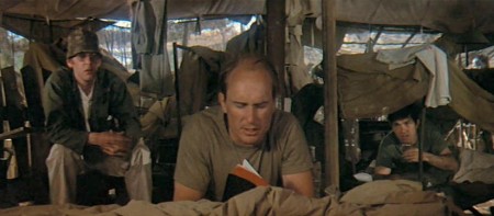 Элиот Гулд) с необычайно ехидной физиономией - работу свою знали туго, оперировали исправно, но на досуге дербанили армейскую дисциплину в хвост и в гриву: лапали медсестер, распивали в палатках мартини из тонких бокалов и всячески измывались над святошей майором (