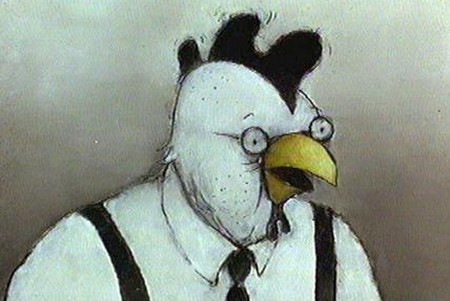 Под стать содержанию противоречива и техника, использованная Тилби и Форбис. В основе – презренный ротоскоп***, превращающийся впоследствии в высокое искусство. Фильм делался в несколько приемов. Сначала на видео-камеру были сняты действия живых актеров: - Тилби и Форбис играли сами (иногда просили друзей и соседей), а для большего праводоподобия надевали разные маскарадные штучки типа картонного клюва. Далее заснятые материалы были переведены на VHS, режиссеры выбрали необходимые кадры, распечатали их с помощью видео-принтера и внесли необходимые изменения, дорисовав цветными карандашами и масляными мелками пятачки, крылья для своих людей-животных. Обычно ротоскоп применяется для экономии времени и усилий, однако у Тилби с Форбис все получилось не так. Используя натурную съемку как ориентир, они полностью вручную отживописали 7000 маленьких рисунков ****, тотально анимируя картинку. В ходе работы они, разумеется, столкнулись с обычной для тотальной анимации проблемой – небольшое несоответствие между кадрами рождает при воспроизведении легкую дрожь и мерцание изображения. Дефект сыграл фильму на руку (как это нередко случается), добавив в него какой-то зыбкости и утонченности. Однако на борьбу с этой и другими сложностями, у режиссеров ушло четыре года.