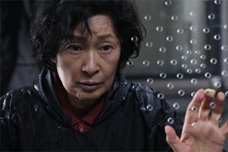 Обезумевшая мать мечется по городу в поисках все новых улик, но постоянно упирается в очередной ложный след – сюжет детектива закручен у Пона виртуозно: он всякий раз достает все новых джокеров из рукава. И кроме прочего, у него традиционно тщательно увязаны мельчайшие детали: если в кадре мелькает какой-то предмет или факт, будь то коробочка с иглами для акупунктуры или кровь из носа у школьницы – дальше он непременно выстрелит в развитии сюжета. В итоге, приучая зрителя к тому, что в фильме нет ничего случайного, к финалу режиссер добивается эффекта полного напряжения: каждое простейшее действие уже представляется зловещим. Подозрительным кажется даже взгляд таксиста, косящегося на едущую в машине мать. А жест, которым она достает из коробки иглу, уже откровенно пугает. Сущности начинают множитсья, в деле появляется второй подозреваемый – и, благодаря неизменному черному юмору Пона, он тоже идиот - а мать постепенно убеждается, что верить в этом деле нельзя никому. Даже самой себе.