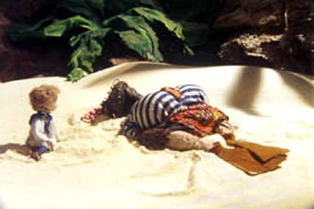 И мне очень понравилась работа с объемом, поскольку в объемной анимации нет промежуточных технологических фаз, как в рисованной - всех этих контуровок, заливок, фазовок. Здесь только мультипликатор, оператор и я, и камера, и пленка. Мы выставляем кадр, я вижу композицию, даю задание мультипликатору, я знаю, от чего к чему придет, процесс мне больше подвластен, а значит, более бескомпромиссен. И еще была одна деталь, которая мне нравилась. В рисованной мультипликации аниматоры были на сдельщине: они делали листы, я их подписывал, и мультипликатор получал деньги в зависимости от метража, поэтому они часто старались "втюхать" мне свою работу, надеясь, что я не замечу ошибок. А кукольные аниматоры были на окладе. Они не зависели от метража, они зависели от качества. И когда я их заражал своей идеей, то тогда они тоже… возникал кураж, стремление довести это до того правильного выражения, как я это вижу. И уже не говорилось о деньгах. Переснять сцену? Без вопросов. Переснималось в угоду качеству. Мне это так понравилось, что я уже стал придумывать свои сюжеты в объеме, но уходя от традиционной куклы, потому что традиционная кукла мне на ту пору вообще не нравилась. И уходя от куклы, я приходил к каким-то своим формам.