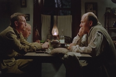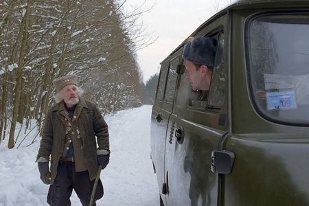 Еще один такой дорожный знак-детерминант – странный дед, обнаруженный героем-шофером в своей кабине, ни с того ни с сего расскажет ему историю молодого лейтенанта из 1945 года и на полфильма выпадет из повествования. Дед, как станет ясно через некоторое время, послужил предсказателем – то, что случилось там и тогда, повторится здесь и сейчас, когда шофера, как тогдашнего лейтенантика, зазовут выпить и ограбят. Тогда – военный патруль, теперь – вышедшие из темноты и тумана мужички-упыри.